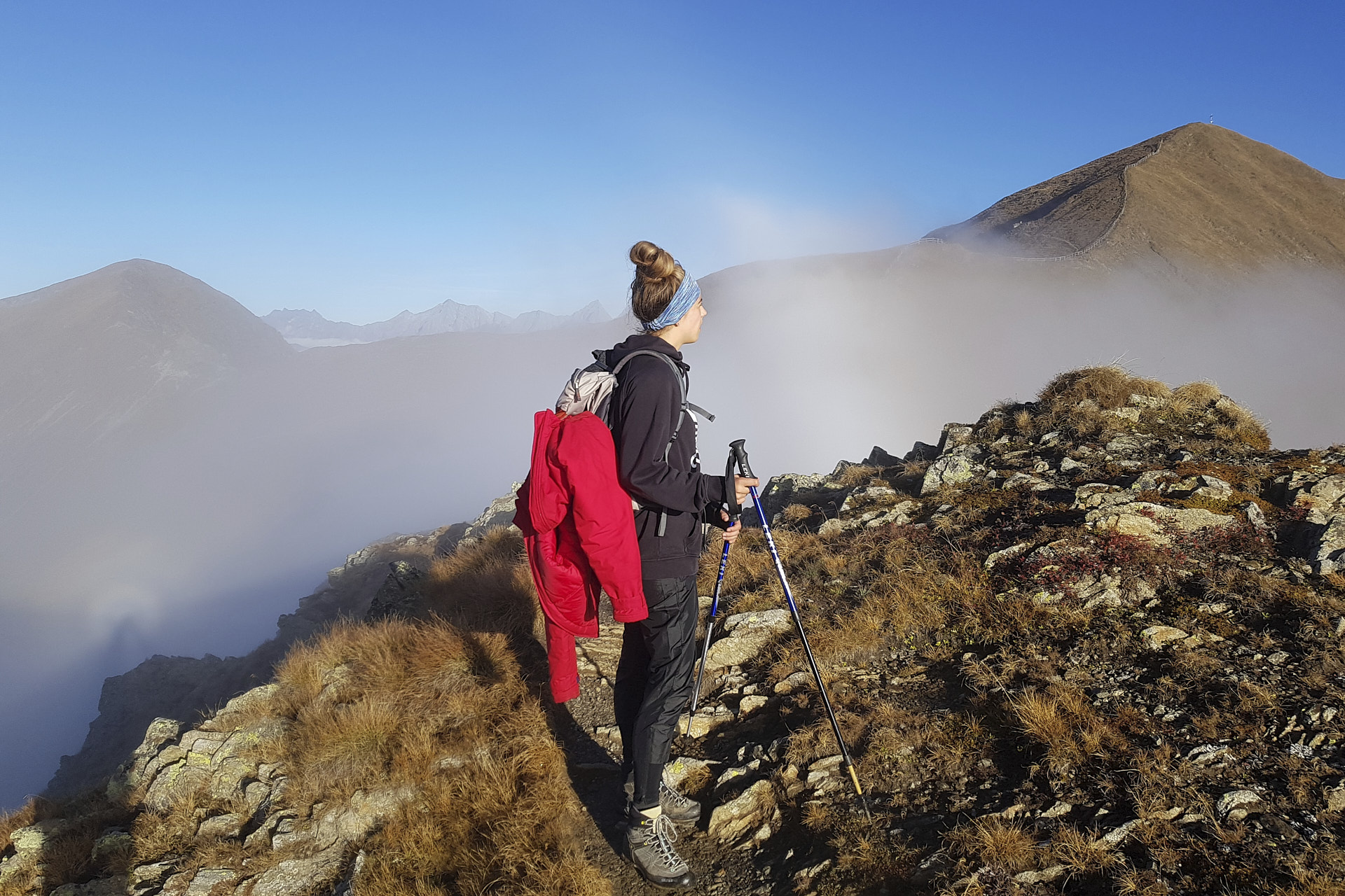Neben festem Schuhwerk, Wanderstöcken, Wechelkeidung und Blasenpflaster, sollten Sie auch Sonnenschutzcreme und wetterfeste Kleidung mitführen.